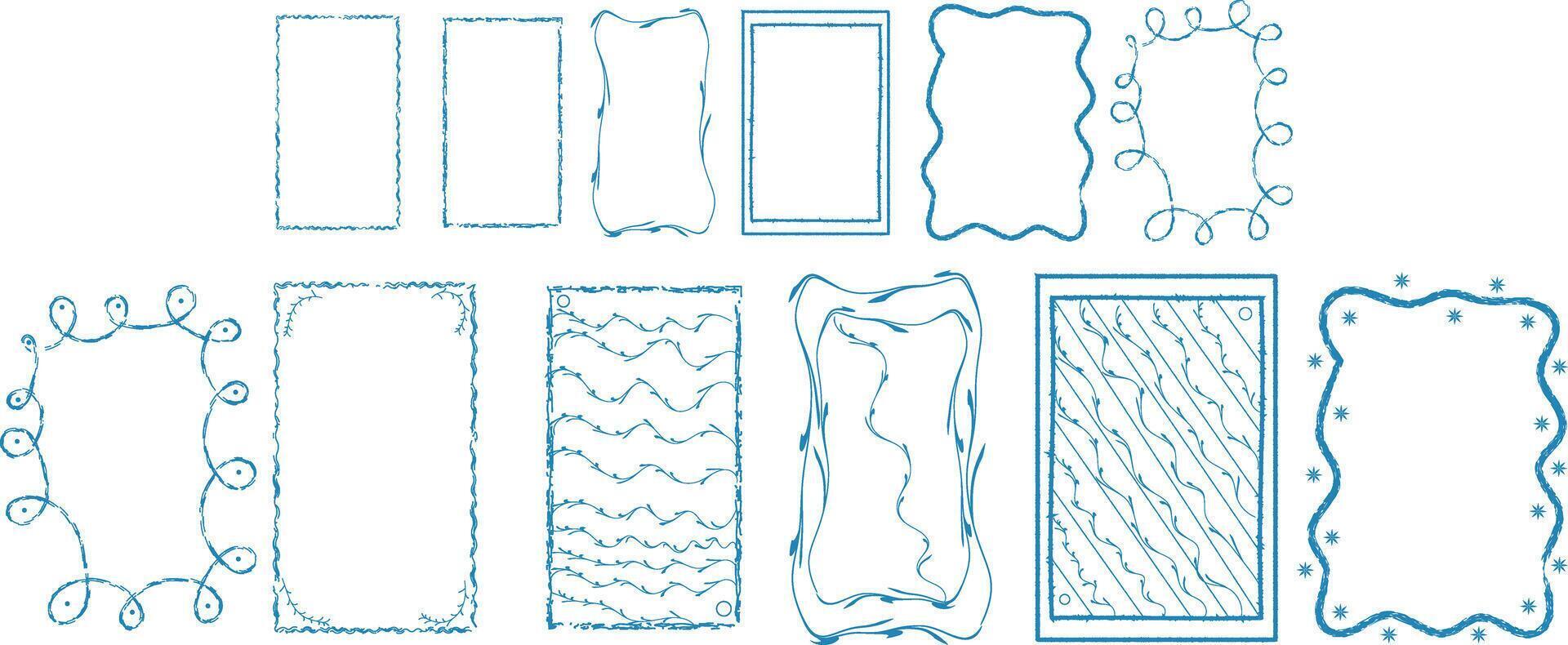 Collection Of Blue Decorative Frames In Various Styles With Artistic Textured Edges On Transparent Background Pro Vector