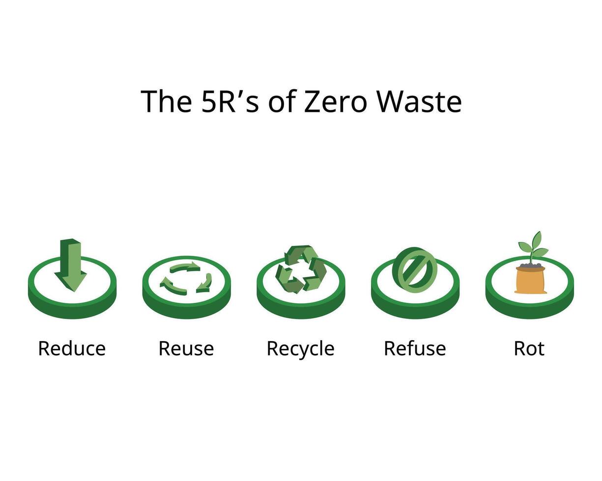5R of Zero Waste, Refuse, Reduce, Reuse, Recycle, Rot, provides a sustainable framework to minimize waste Pro Vector