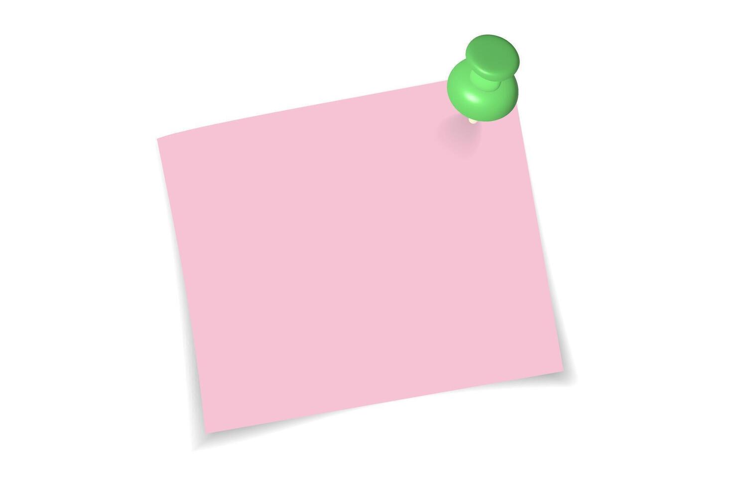 Paper note pinned with a metal push pin. Realistic sheet for reminders, messages, or office design elements. Pro Vector