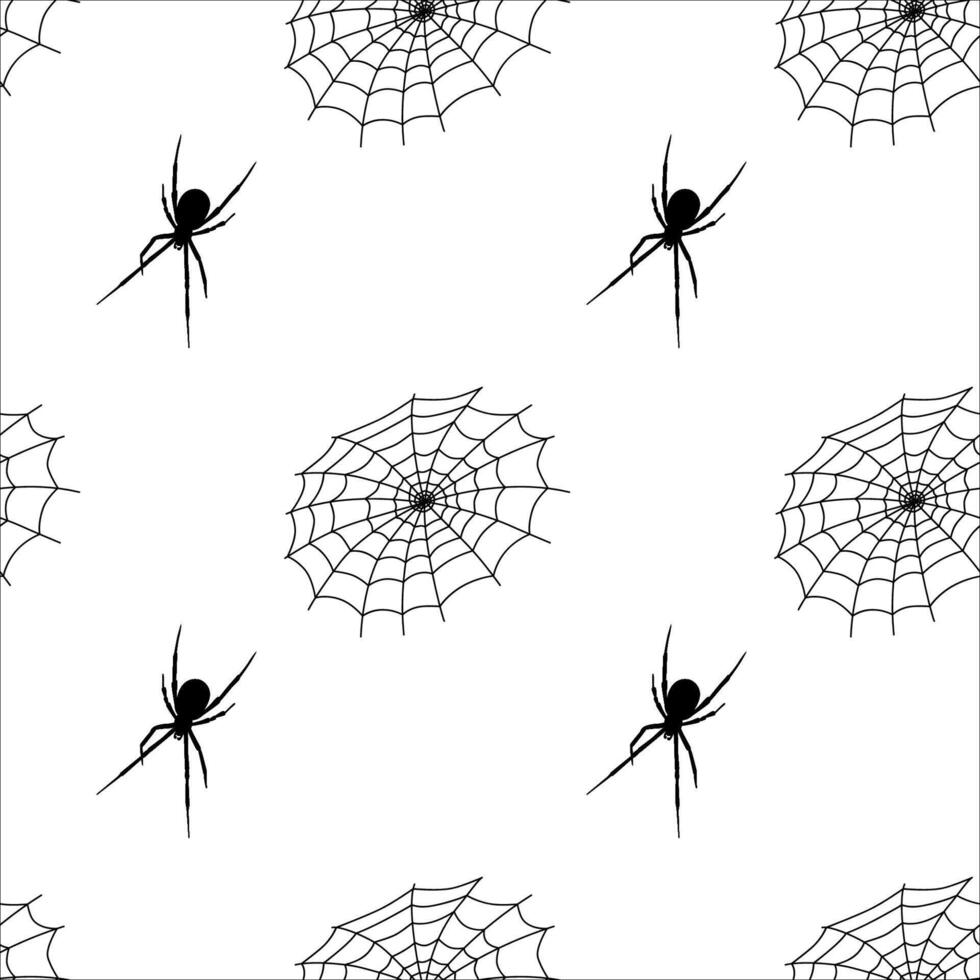 Decorative pattern featuring spiders and webs in black and white for Halloween design Pro Vector