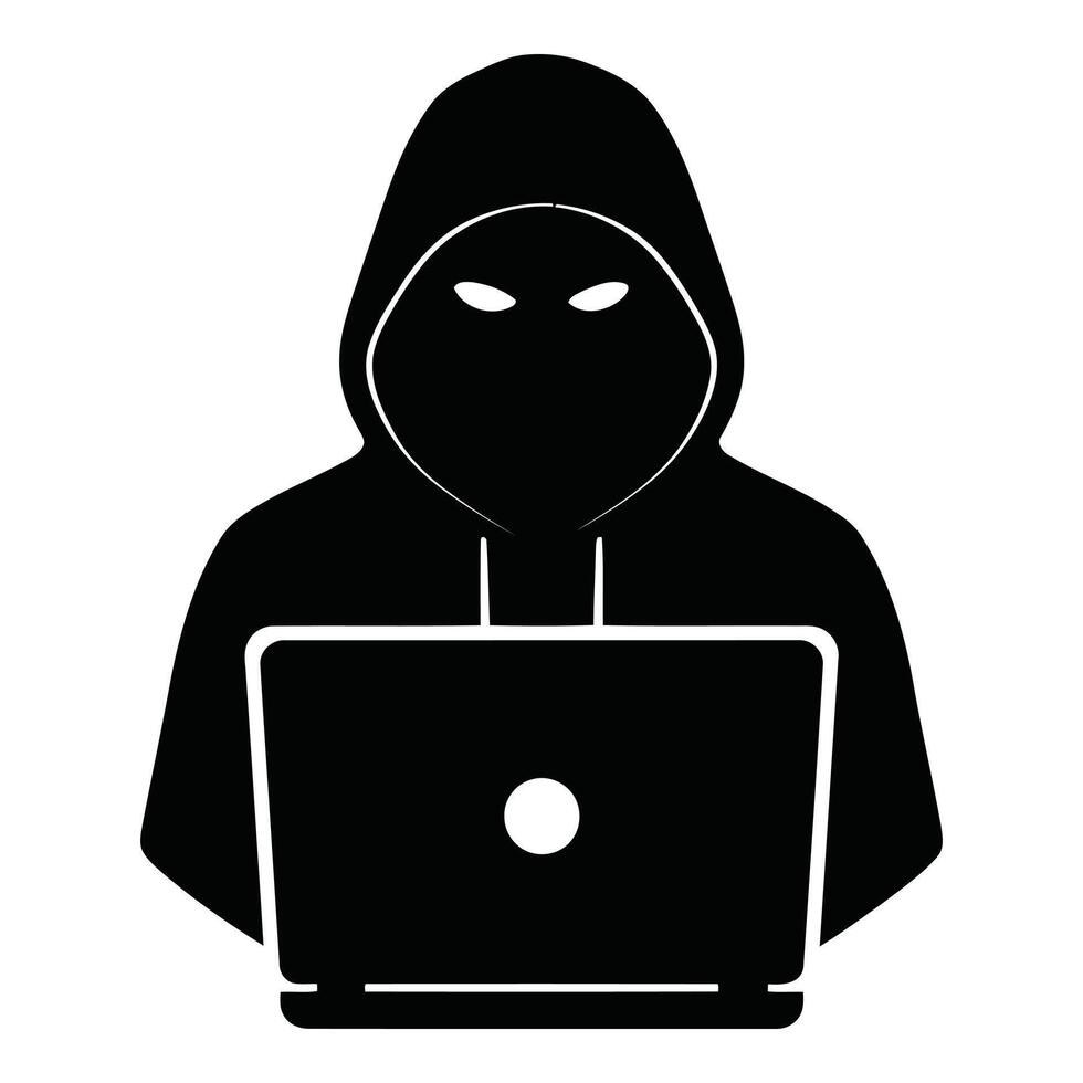 Hacker silhouette using a laptop isolated on white background Pro Vector
