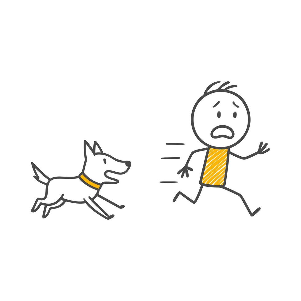 Rapid Escape An Individual Running in Panic and Feeling Fear in the Face of a Dog's Chase. Pro Vector