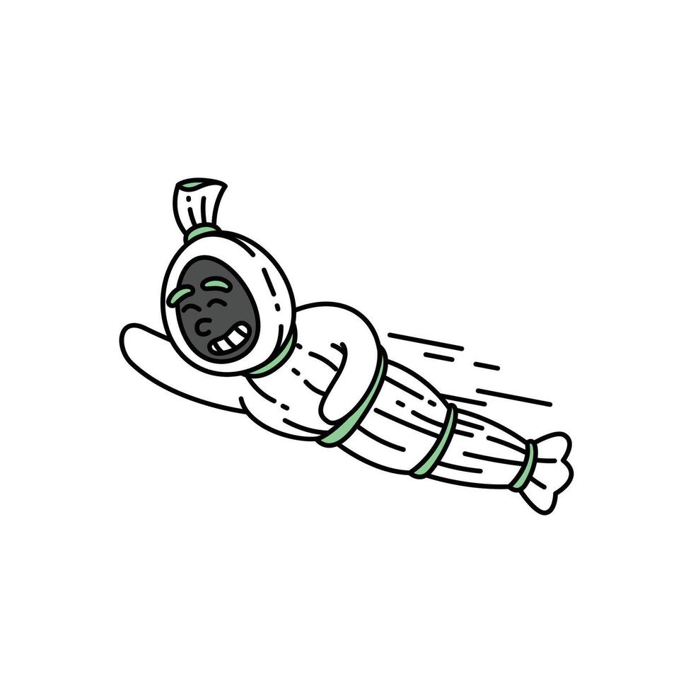 A cartoon illustration of a pocong ghost, an Indonesian folklore ghost, flying horizontally with a happy and smiling face. Pocong, Indonesian Ghost Retro Character. Pro Vector