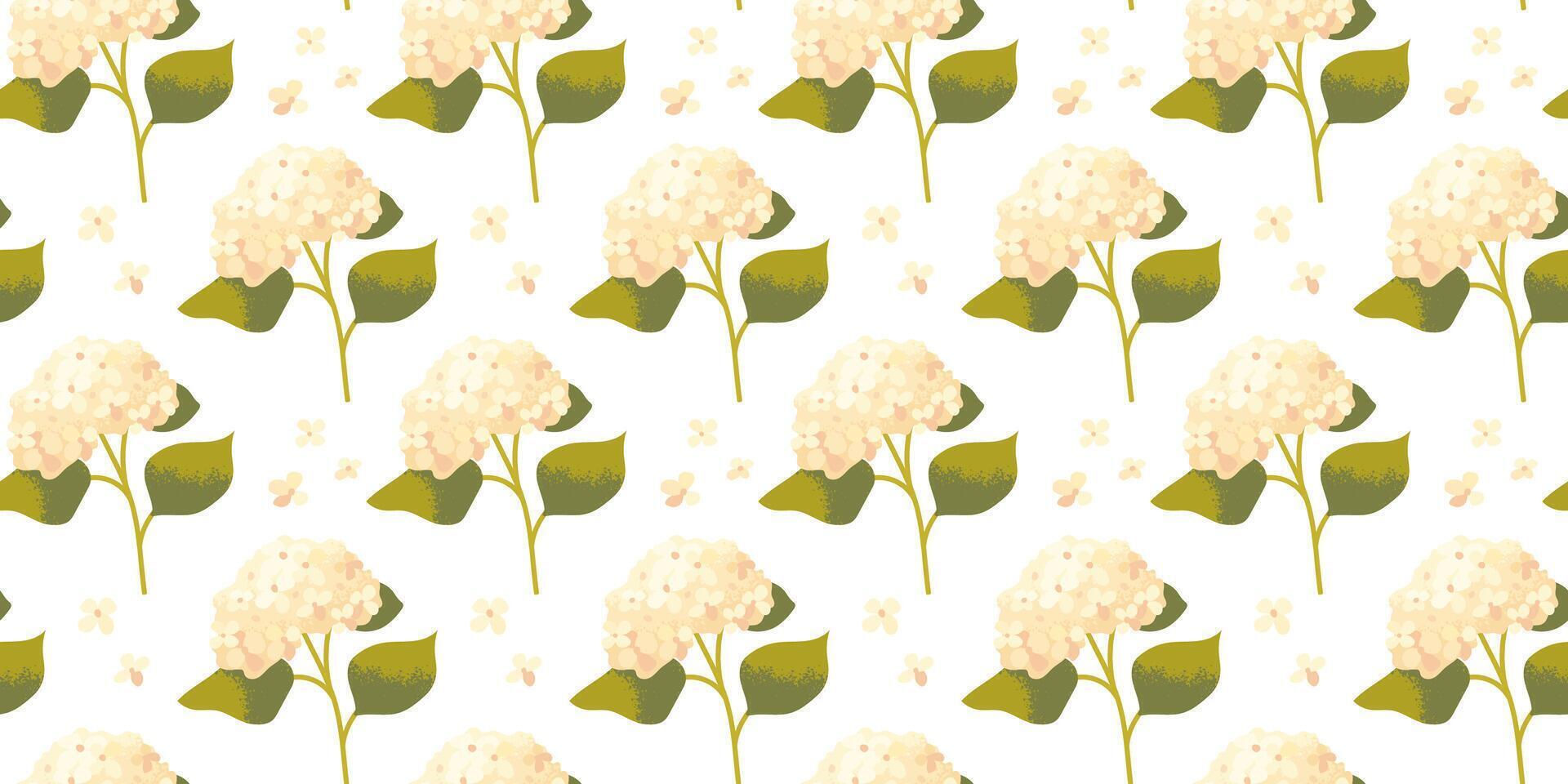 Seamless floral pattern with white hydrangea branches on white background. Botanical pattern, fabric swatch Pro Vector