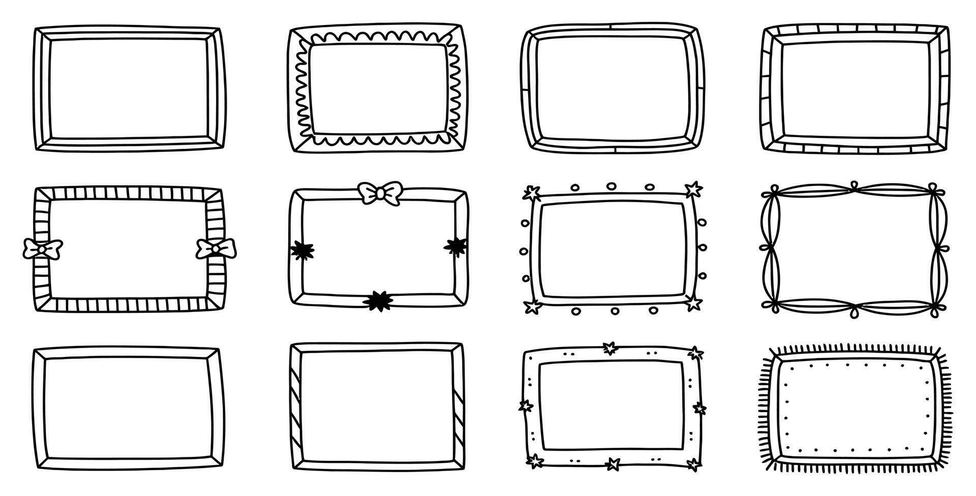 Set of twelve different doodle frame illustrations for creative projects Pro Vector