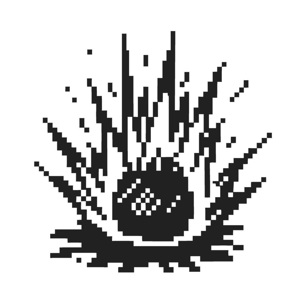 Pixel explosion icon black and white retro burst, dynamic energy impact, digital destructive effect, abstract destructive force Pro Vector