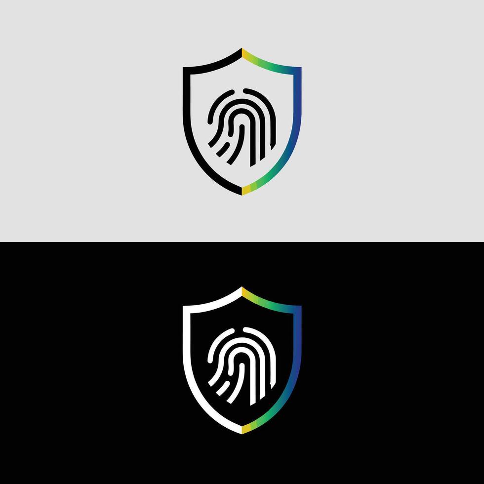 Fingerprint security shield logo design for biometric authentication and data protection concept design Pro Vector