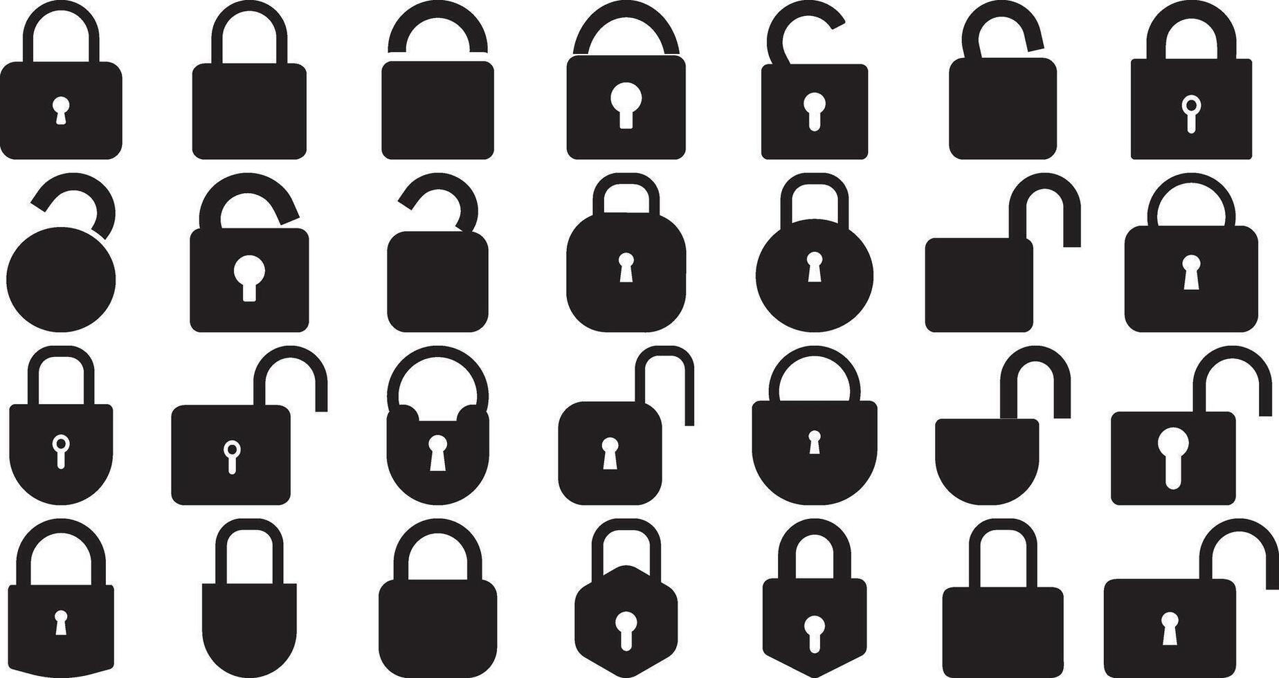 Security Padlock and Unlock Icons set for Privacy and Protection Concepts Pro Vector