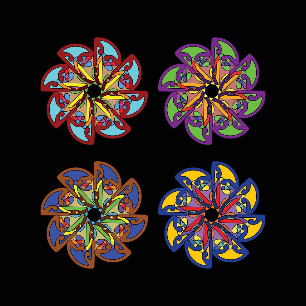 Geometric floral patterns on black background vibrant abstract design for marketing and ads Pro Vector