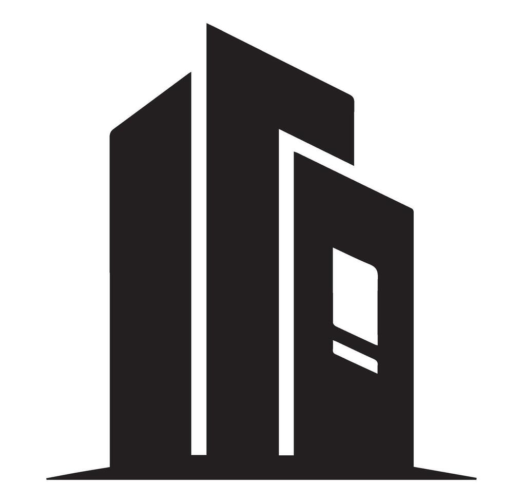 Abstract silhouette of a tall, angular building architecture Pro Vector