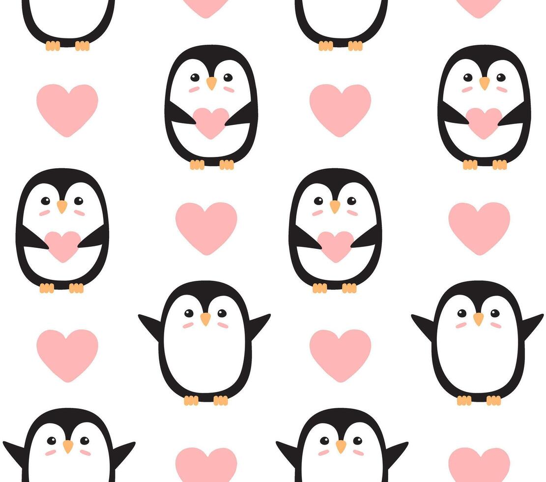 Seamless pattern of flat penguin with heart isolated on background Pro Vector
