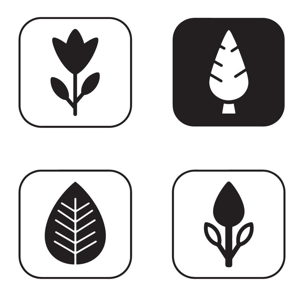 Minimalist botanical icons of leaves and flowers in square frames for design elements Pro Vector