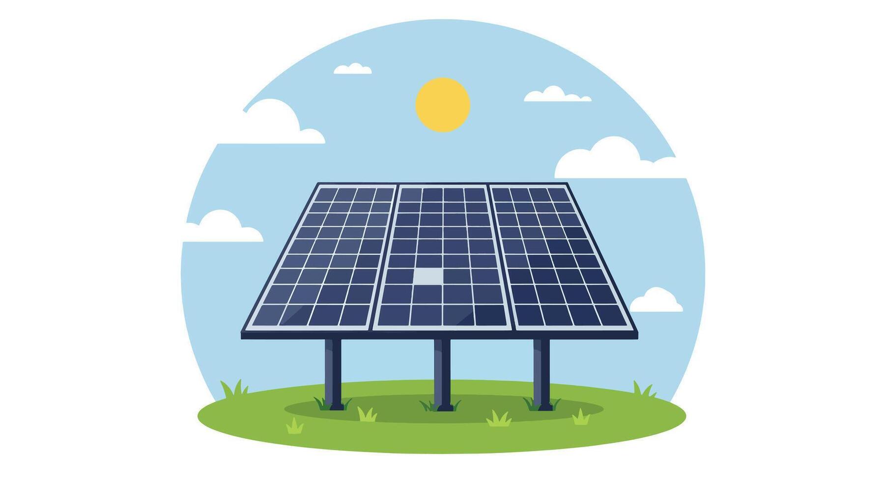 Array of Solar Panels Generating Clean Energy Under Sunny Sky. Pro Vector