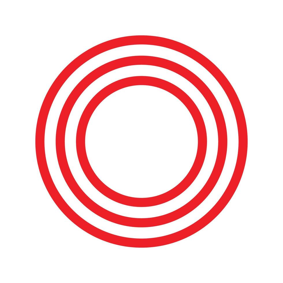 red circle frame icon. isolated on white background, Red circular icon featuring three concentric circles of equal thickness. Pro Vector