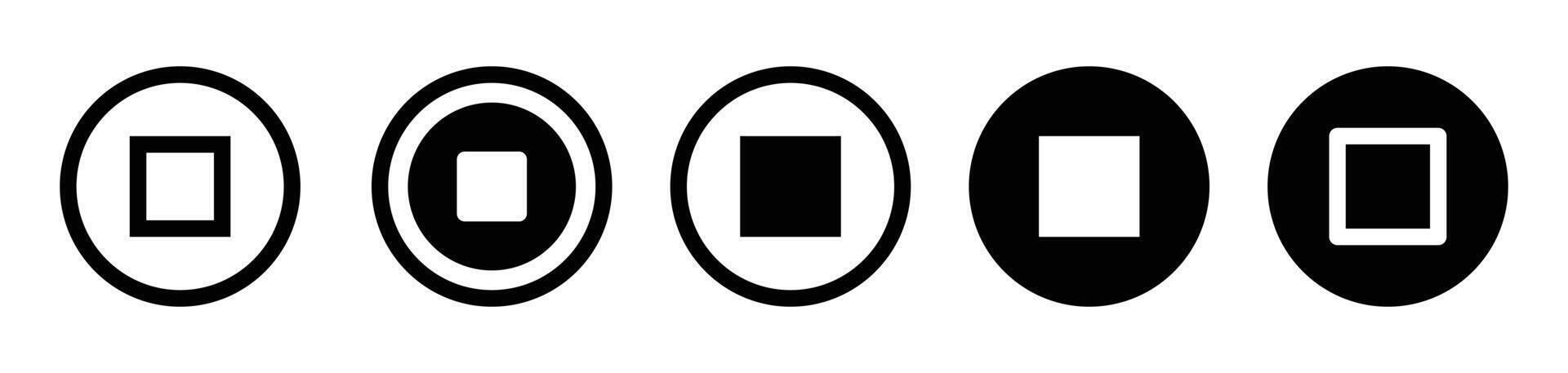 sets Stop button icon, Five simple icons represent stop buttons. Pro Vector