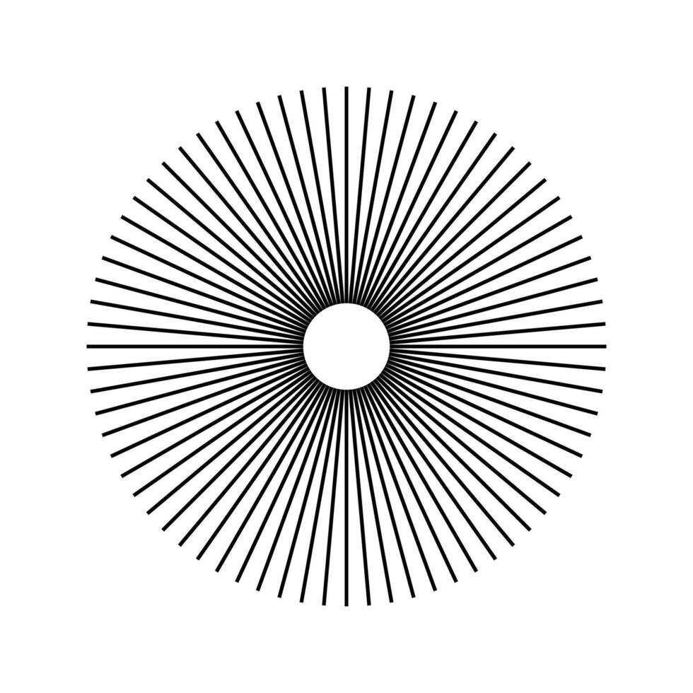 Radial circle lines, circular radiating geometric shapes resembling sun rays. Abstract design element. illustration on a white background. Pro Vector