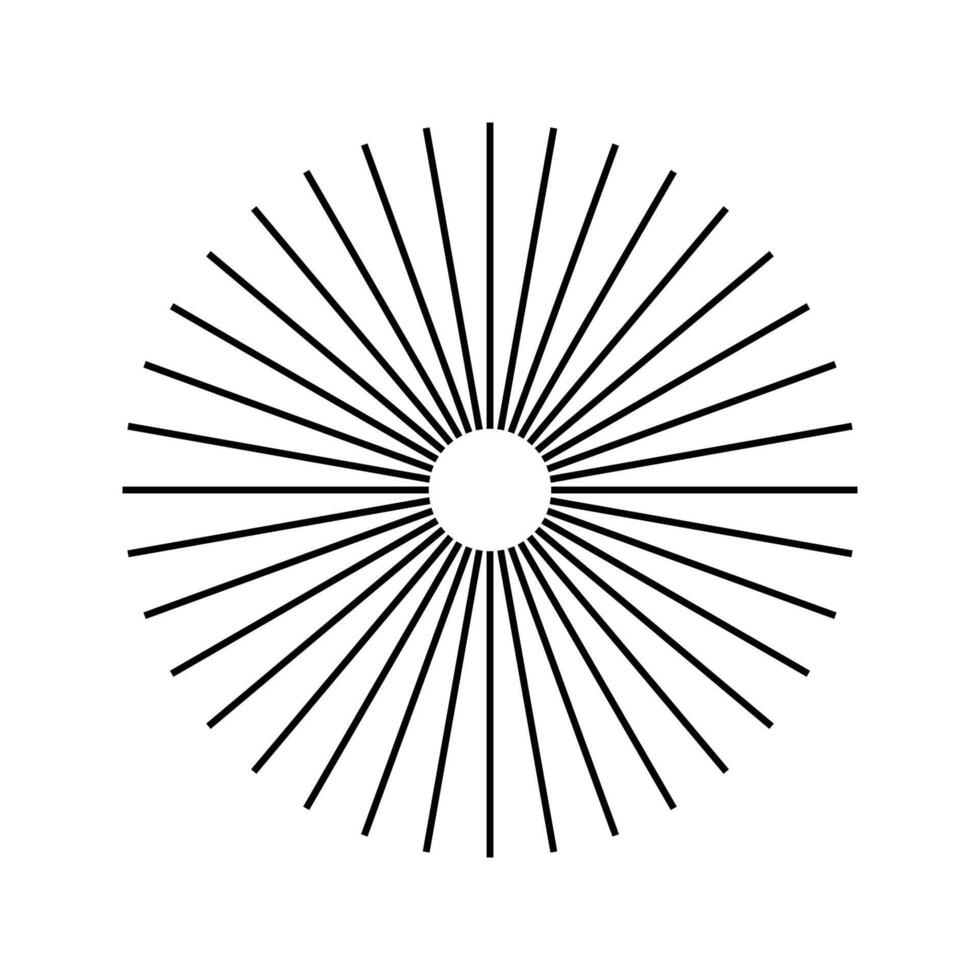 Radial circle lines, circular radiating geometric shapes resembling sun rays. Abstract design element. on a white background. Pro Vector