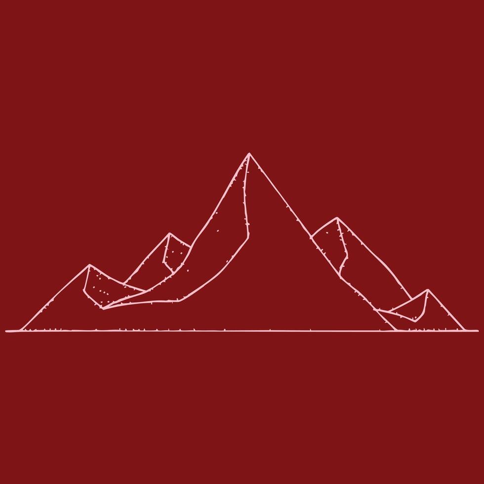 Minimalist Line Drawing of Mountain Range on Deep Red with Rough Sketch Style Pro Vector