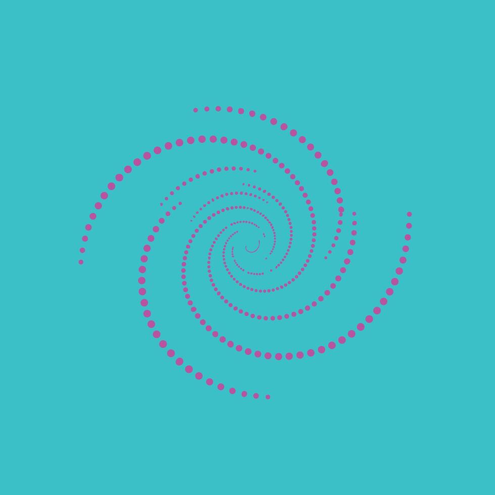 Vibrant pink and purple dotted spiral pattern on a bright turquoise creating a dynamic visual effect Pro Vector