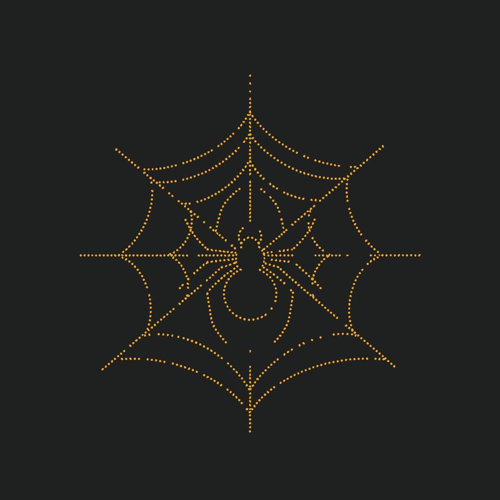 Elegant spider web adorned with shimmering golden dots against a dark , showcasing intricate craftsmanship and delicate design Pro Vector