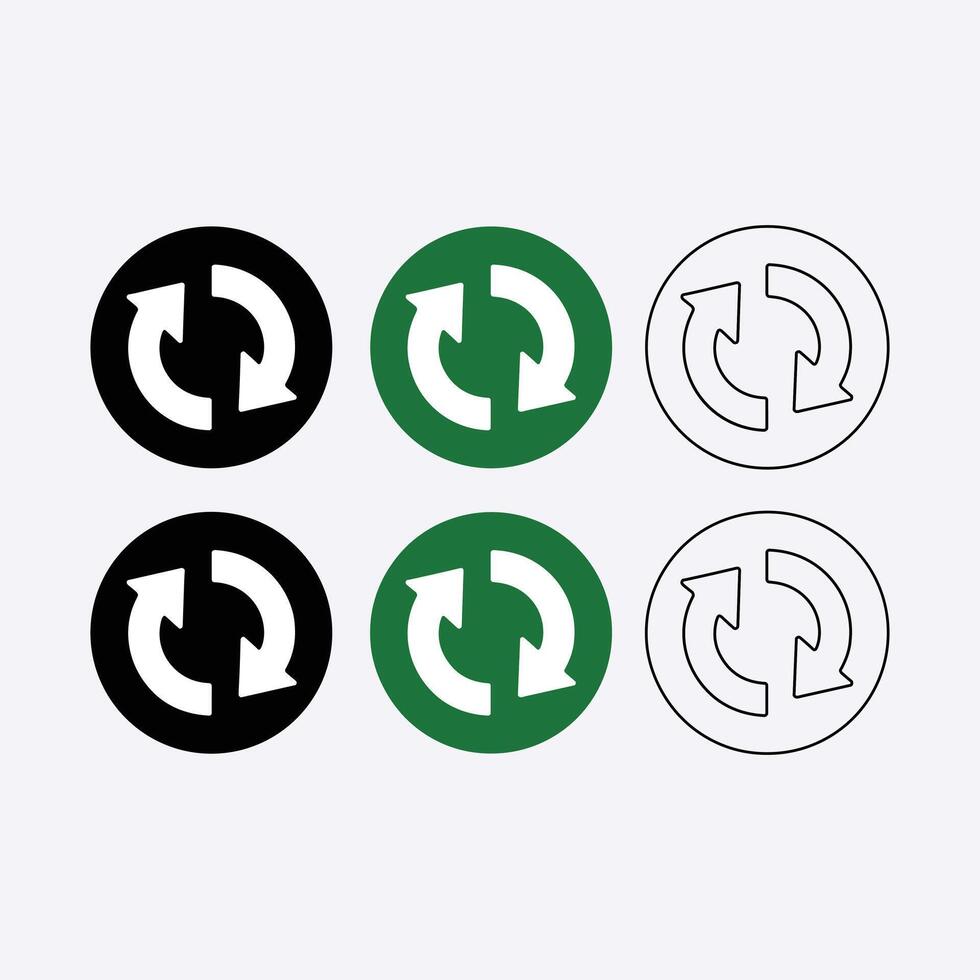 Set of three circular refresh and recycle icons in black green and outline symbol Pro Vector