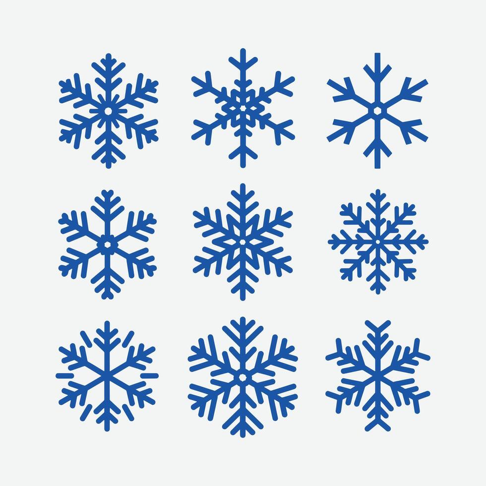 Snowflake icons Set, A collection of nine different intricately designed blue snowflake icons set Free Vector