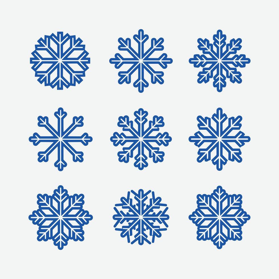 Snowflake icons Set, A collection of nine different intricately designed snowflake icons patterns. Pro Vector