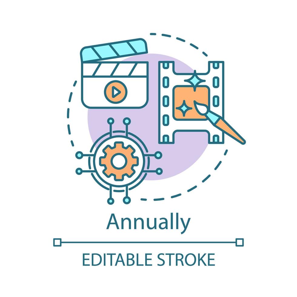 Annually concept icon. Video editor subscription tariff idea thin line illustration. Film editing. Applying effects. Motion design program. Vector isolated outline drawing. Editable stroke Pro Vector