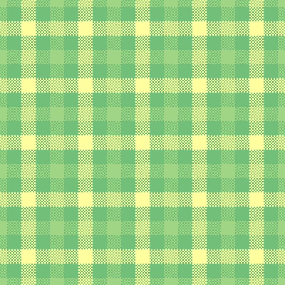 Pixelated plaid pattern in soft greens and yellows. Retro aesthetic, ideal for backgrounds, textiles, or nostalgic designs. Versatile for web or print projects. Pro Vector
