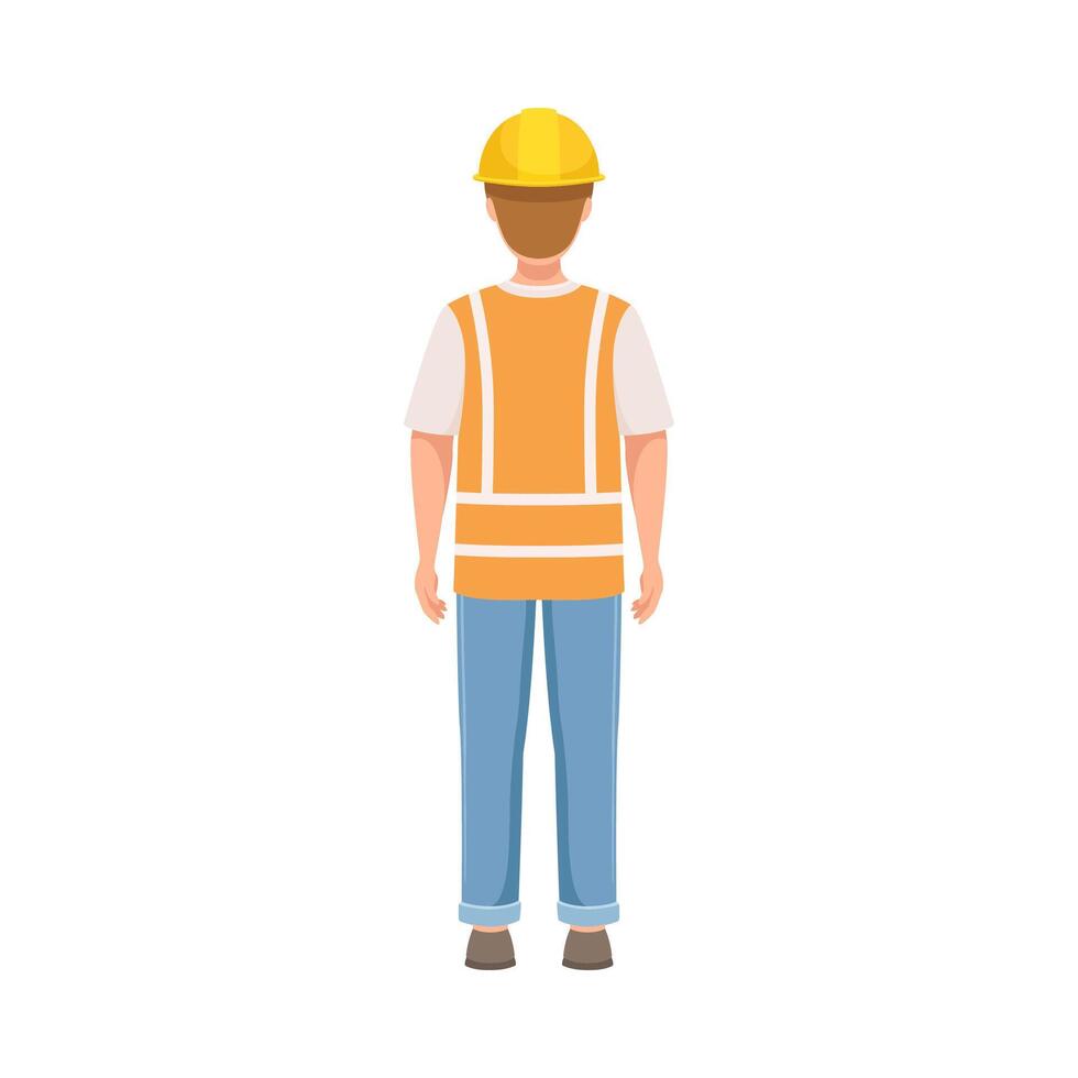 Man Builder Character in Hard Hat and Warnvest in Standing Pose Back View Illustration Pro Vector
