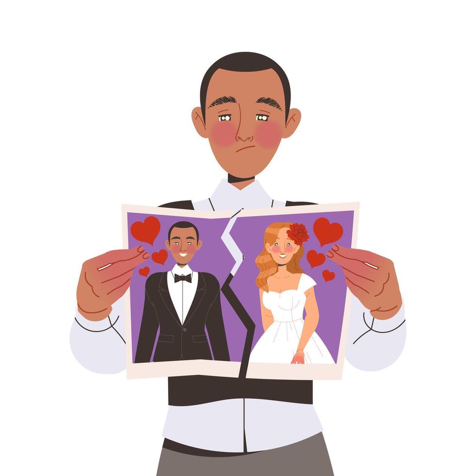 Man Tearing Photo from Marriage Ceremony Having Relationship Problems Suffering from Troubles in Relation Illustration Pro Vector