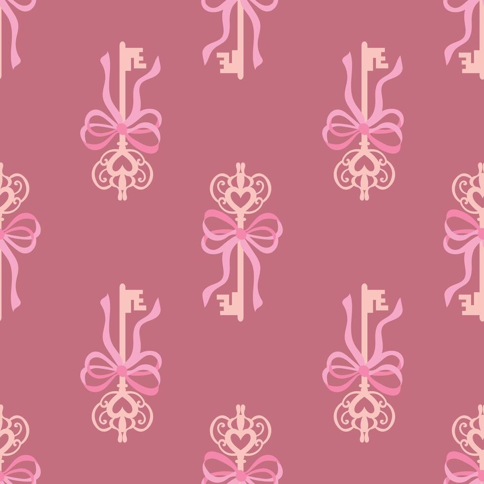 Ornate Keys with Bows Pattern on Pink. Endless textures for your design Pro Vector