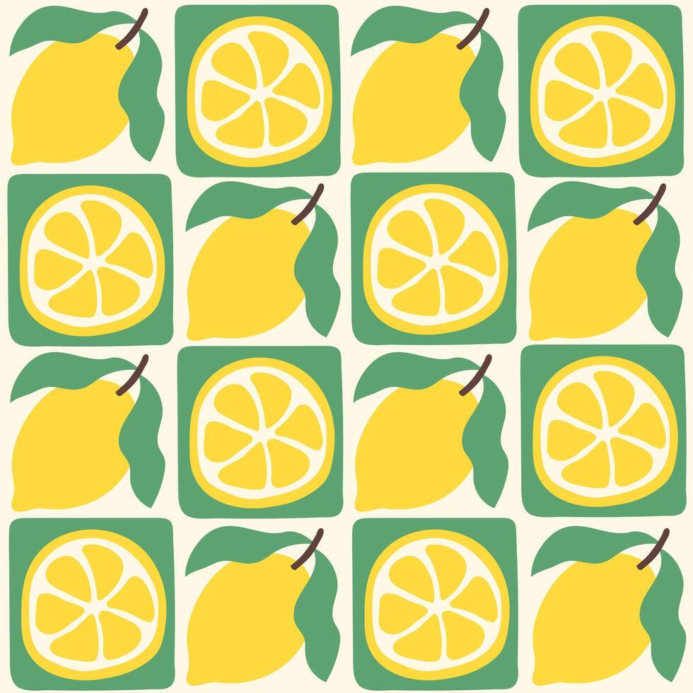 Lemon Geometric Seamless Pattern with Slice and Leaf Pro Vector