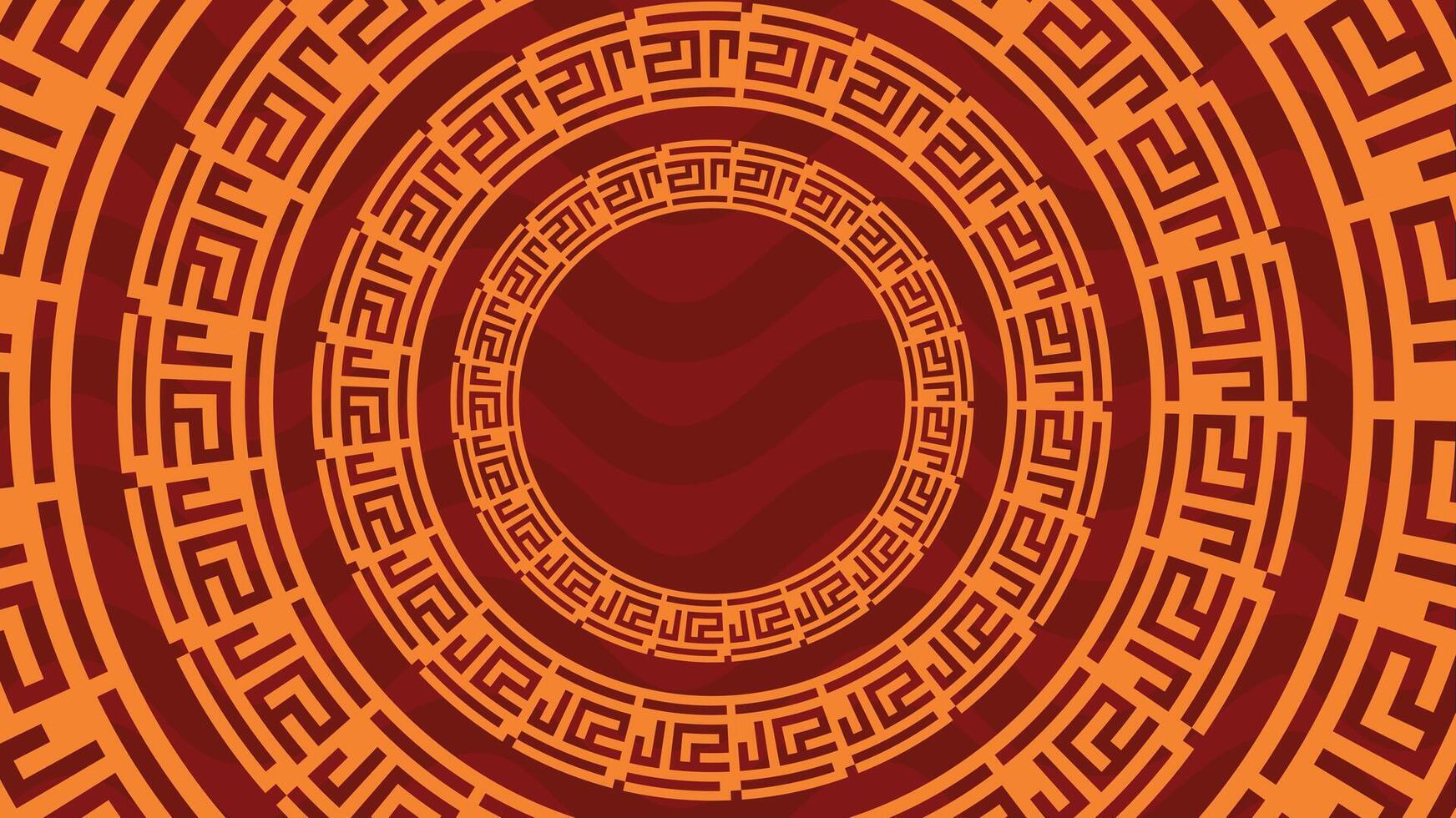 Red geometric circular maze pattern background for oriental design Pro Vector