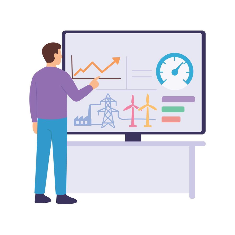 Grid Monitoring, Monitoring renewable power grid performance Pro Vector