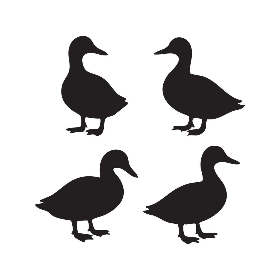 Four Duck Silhouettes in a Simple Design, Featuring Different Poses and Angles of the Bird on a White Background vector