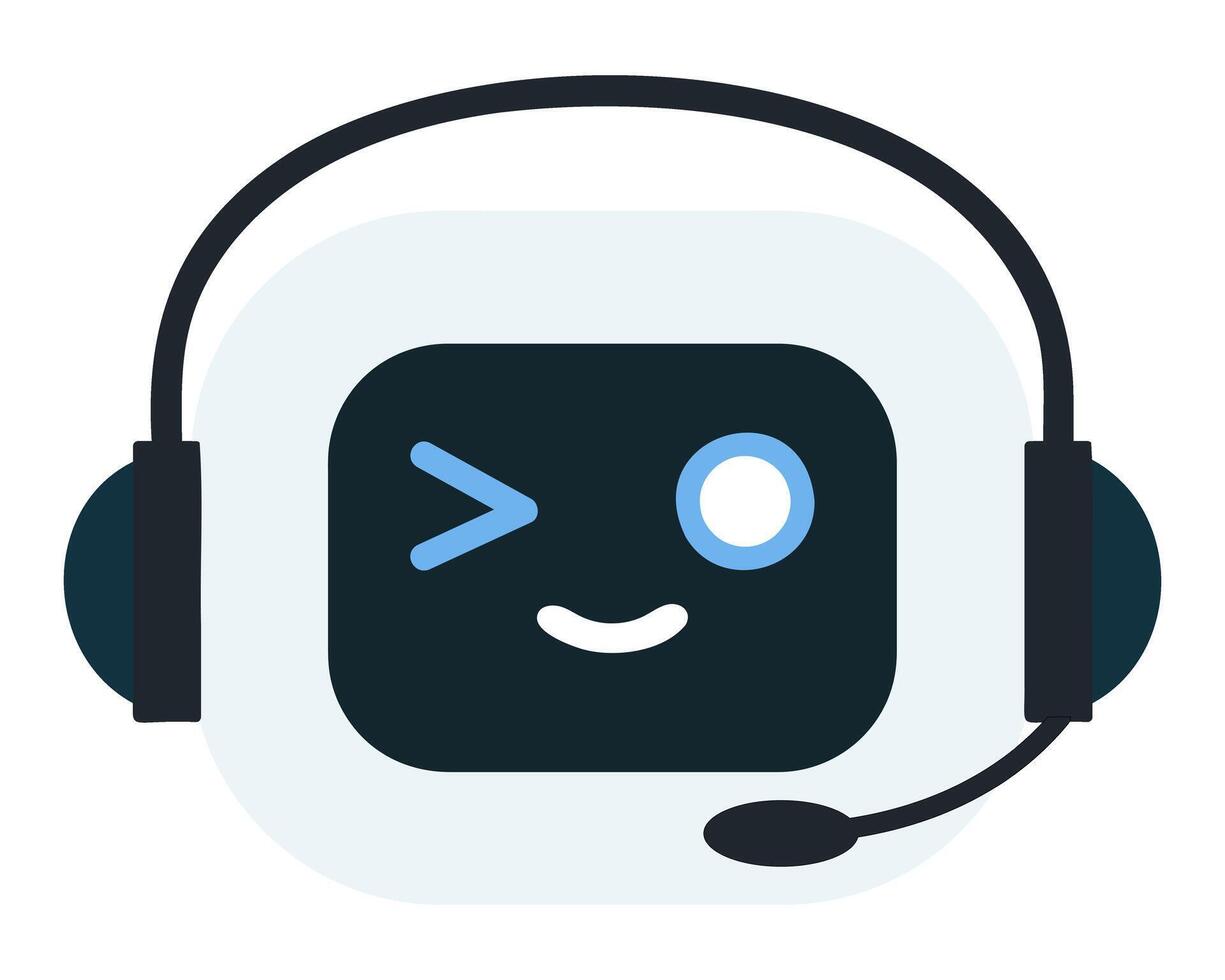 Cute AI chatbot icon winking and smiling isolated on transparent background Pro Vector