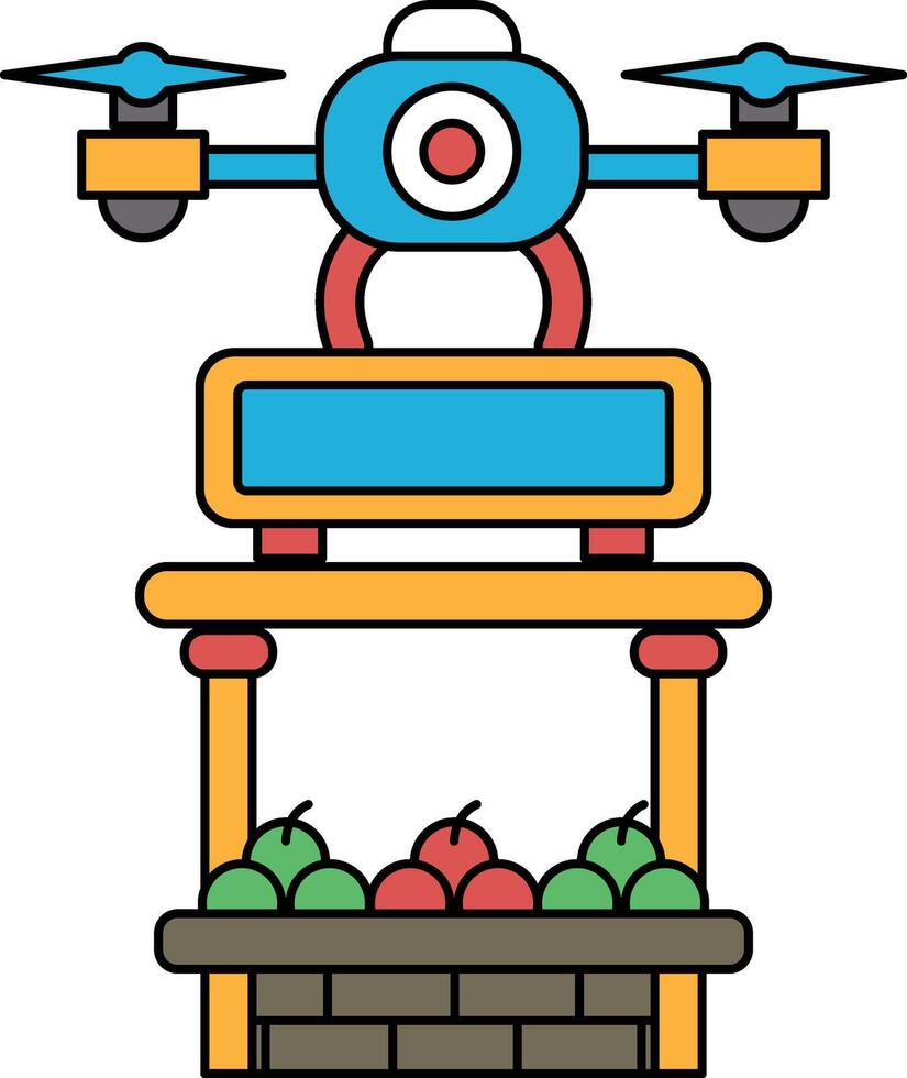 A drone is hovering over a table with apples on it Pro Vector
