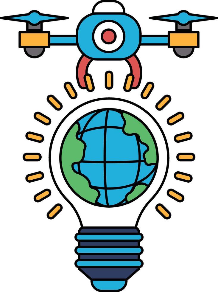 A drawing of a globe with a light bulb on top of it Pro Vector