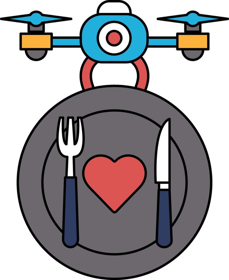 A plate with a knife and fork on it with a heart in the middle Pro Vector