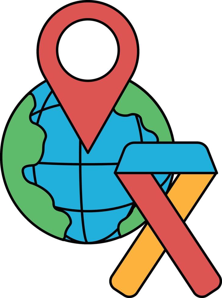 A map of the world is drawn with a red ribbon on it Pro Vector