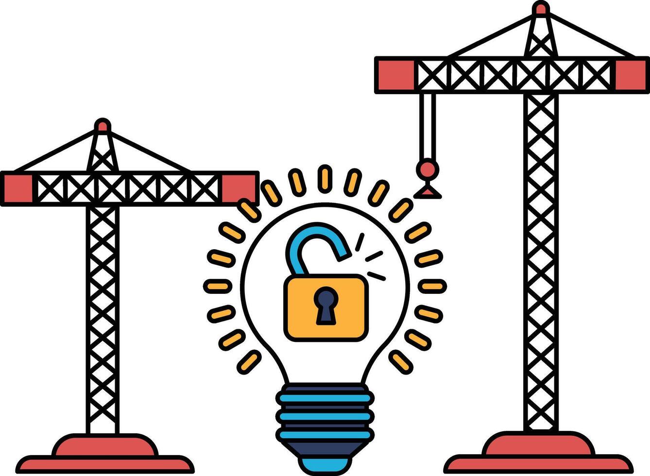 A drawing of two cranes with a light bulb in between them Pro Vector