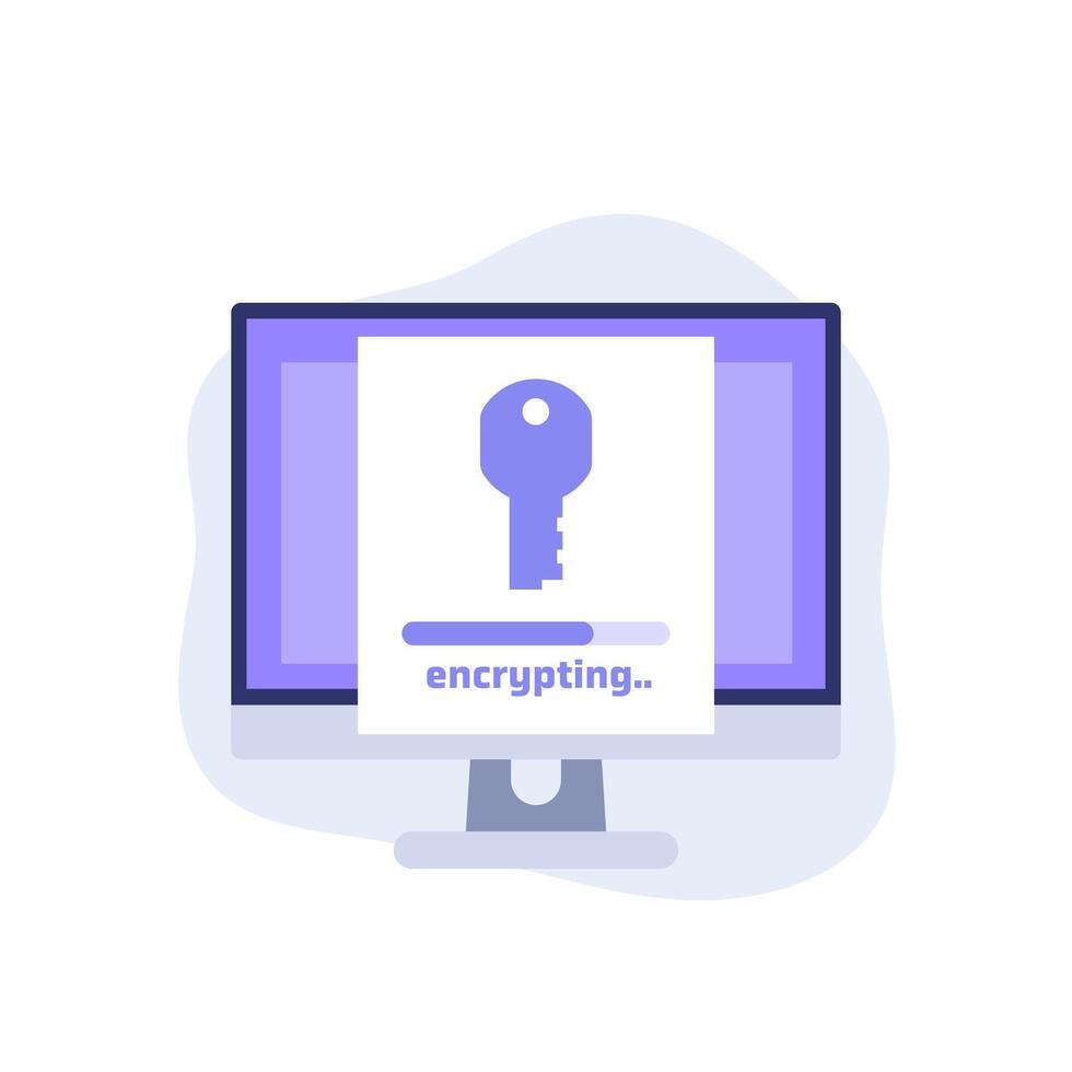 Encryption of data icon with progress bar and computer Pro Vector