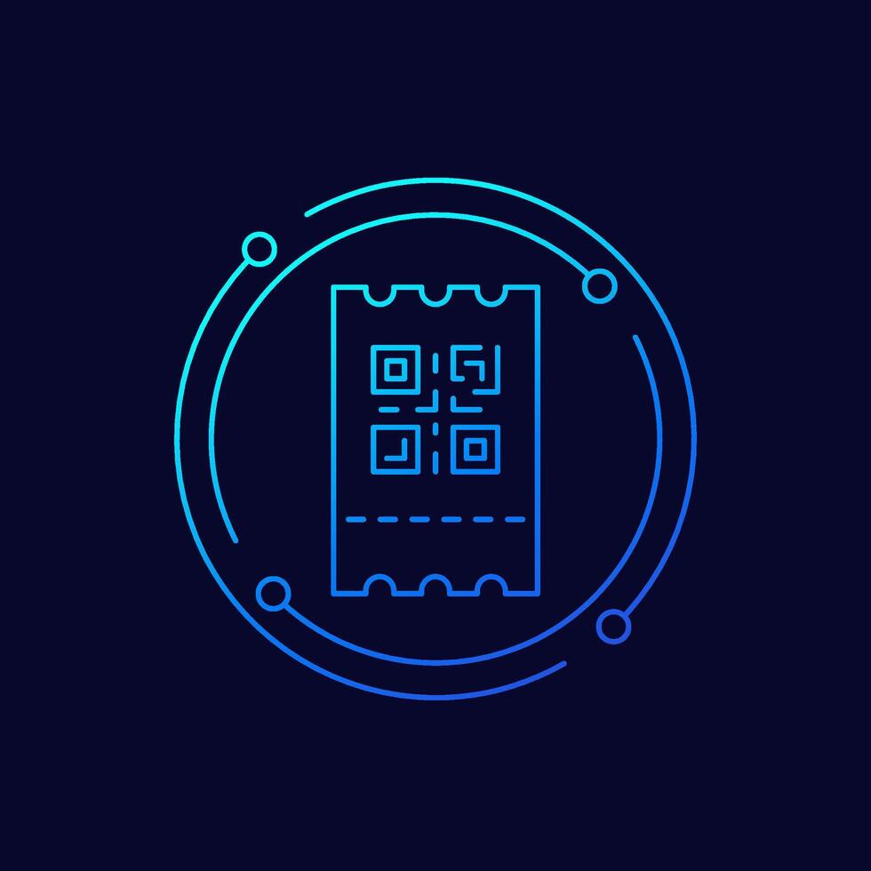 ticket icon with qr code, linear design Pro Vector