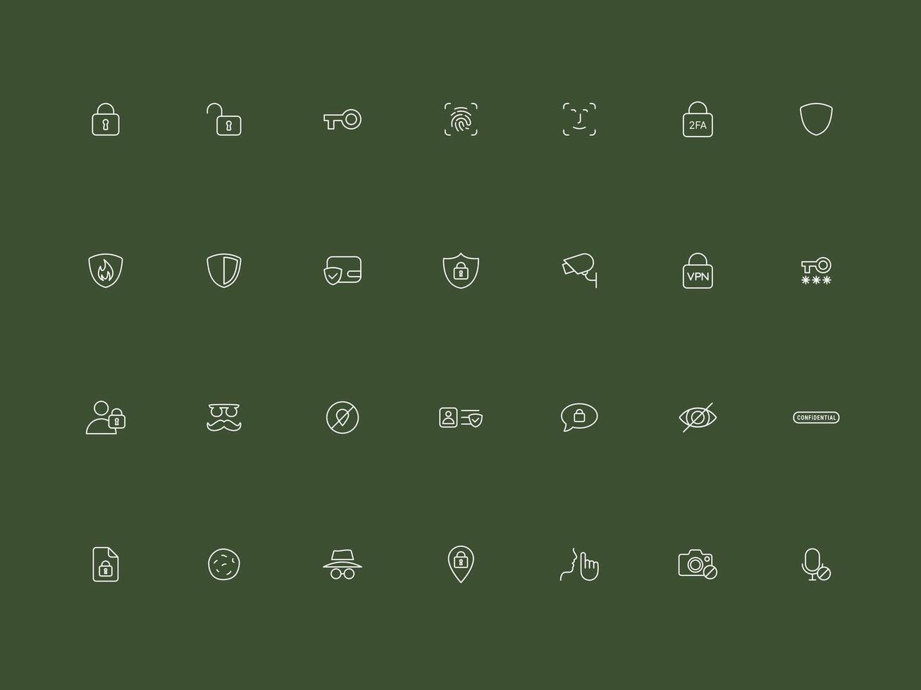 Bold UI UX Privacy and Security Icons Collection Pro Vector