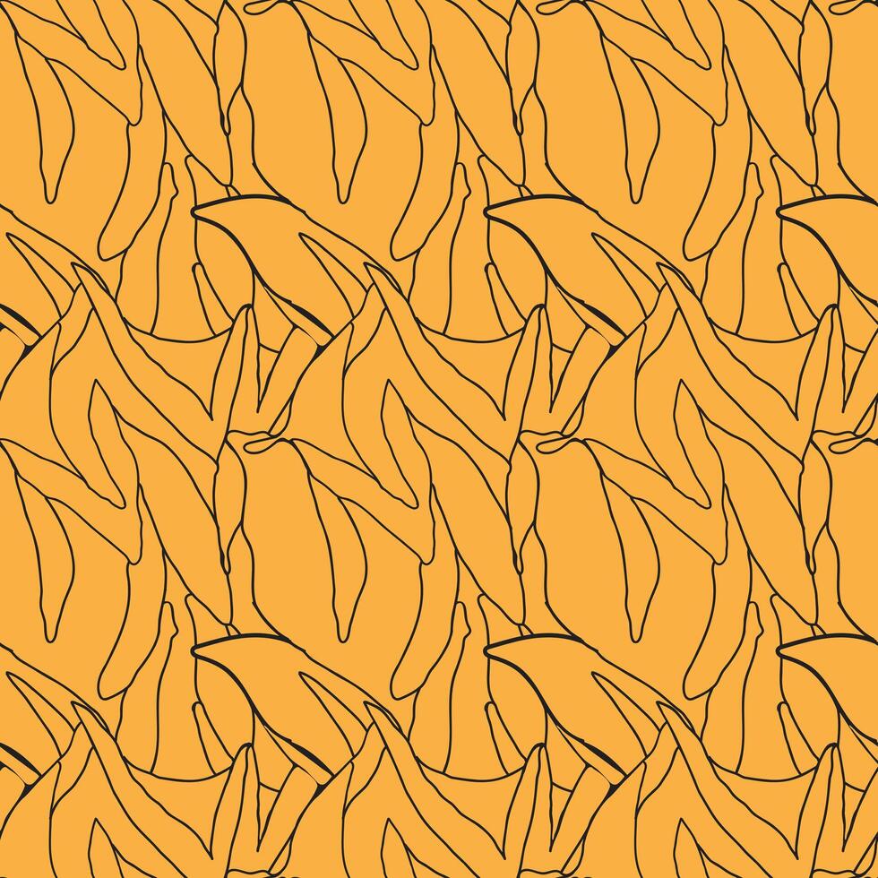 An abstract pattern of elongated leaf shapes outlined in black on a vibrant orange background, creating a lively design. vector