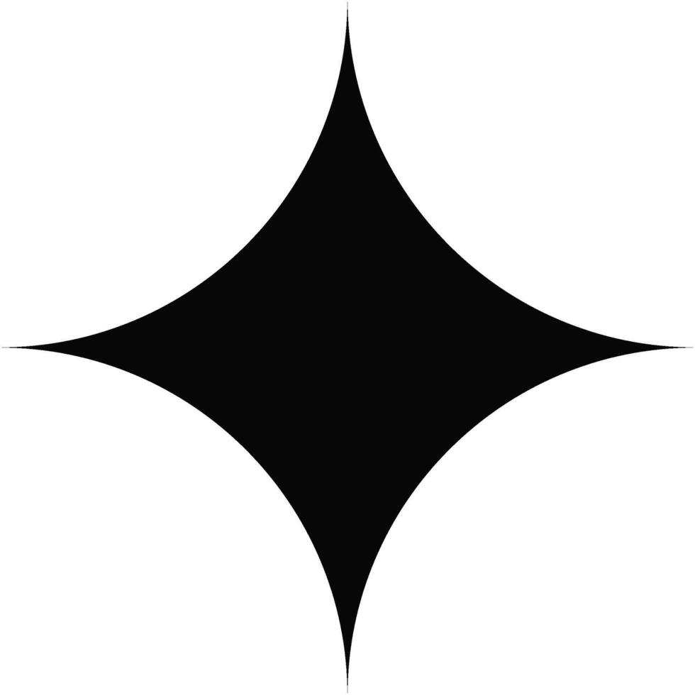 A minimalist black four-pointed star shape with curved points on a white background. Clean and geometric. Pro Vector