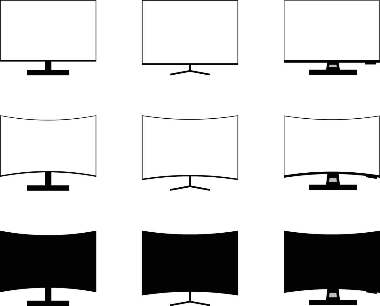 Monitor icon set, including flat and curved screens, isolated on white background for various applications Pro Vector