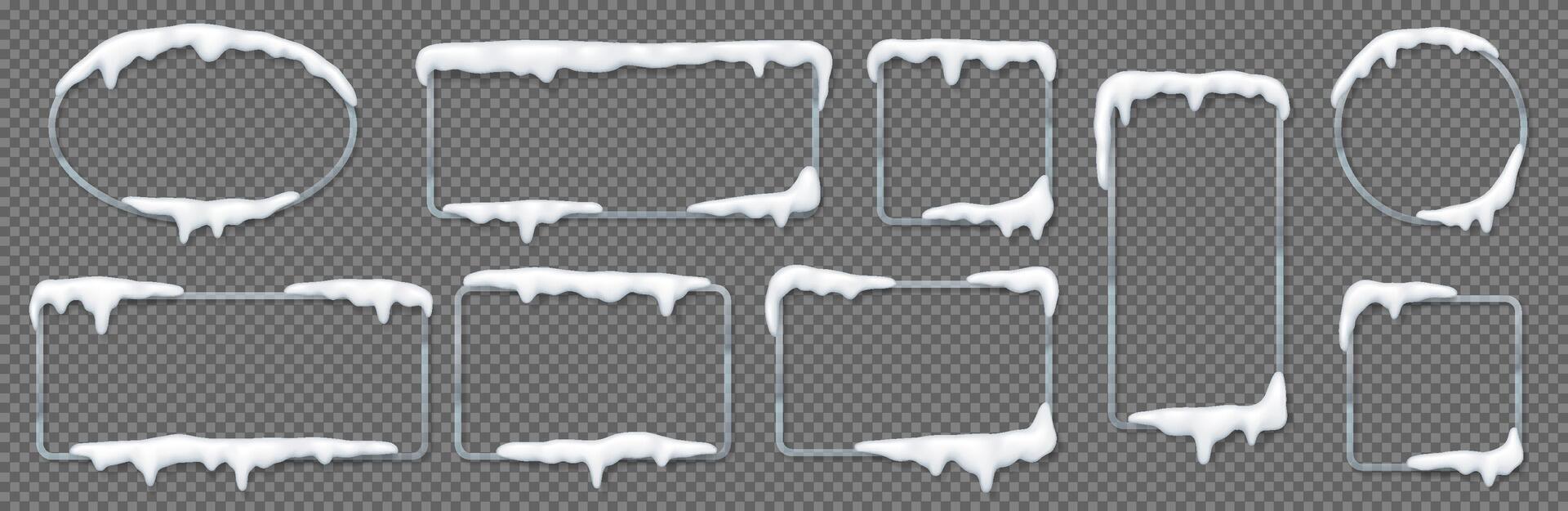 Set of frames adorned with snow on a background. Features different shapes and snow formations. Ideal for winterthemed designs and crafts. Pro Vector