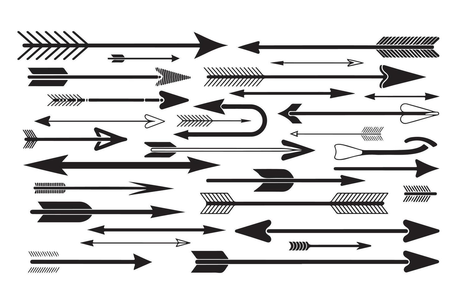 Collection of various arrow designs pointing right and upwards symbolizing direction and movement Pro Vector